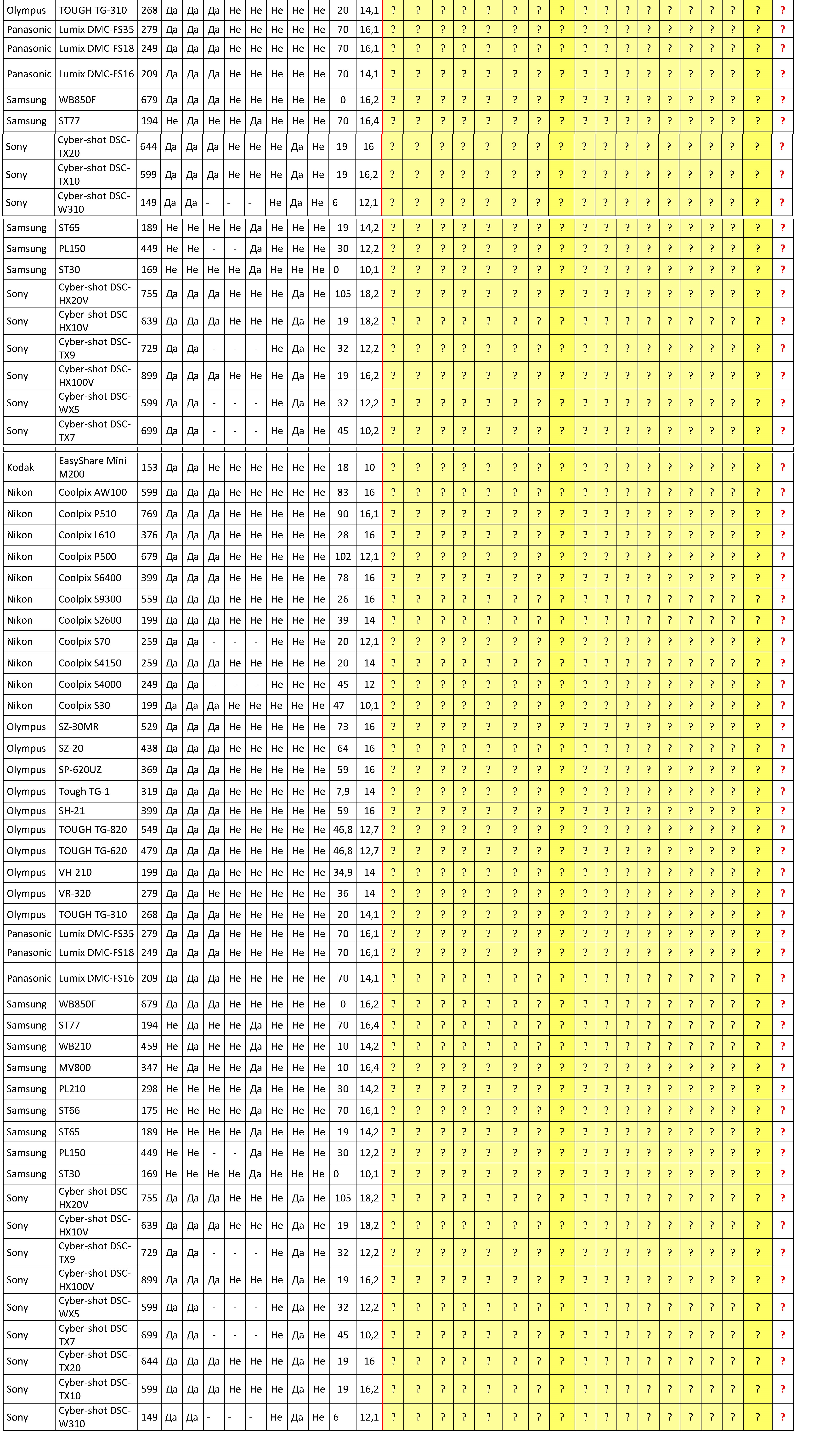 Canon PowerShot S100, Canon PowerShot SX230 HS, Kodak Easyshare Max Z990, Kodak EasyShare Touch M577, Kodak Easyshare M575, Kodak Easyshare C142, Nikon Coolpix AW100, Nikon Coolpix P510, Nikon Coolpix L610, Nikon Coolpix P500, Nikon Coolpix S6400, Nikon Coolpix S4150, Olympus SP-620UZ, Olympus TOUGH TG-820, Olympus TOUGH TG-620, Olympus VH-210, Olympus VR-320, Panasonic Lumix DMC-FS35, Samsung ST77, Samsung ST65, Samsung PL150, Sony Cyber-shot DSC-HX10V, Sony Cyber-shot DSC-TX7, Sony Cyber-shot DSC-TX10, Sony Cyber-shot DSC-W310